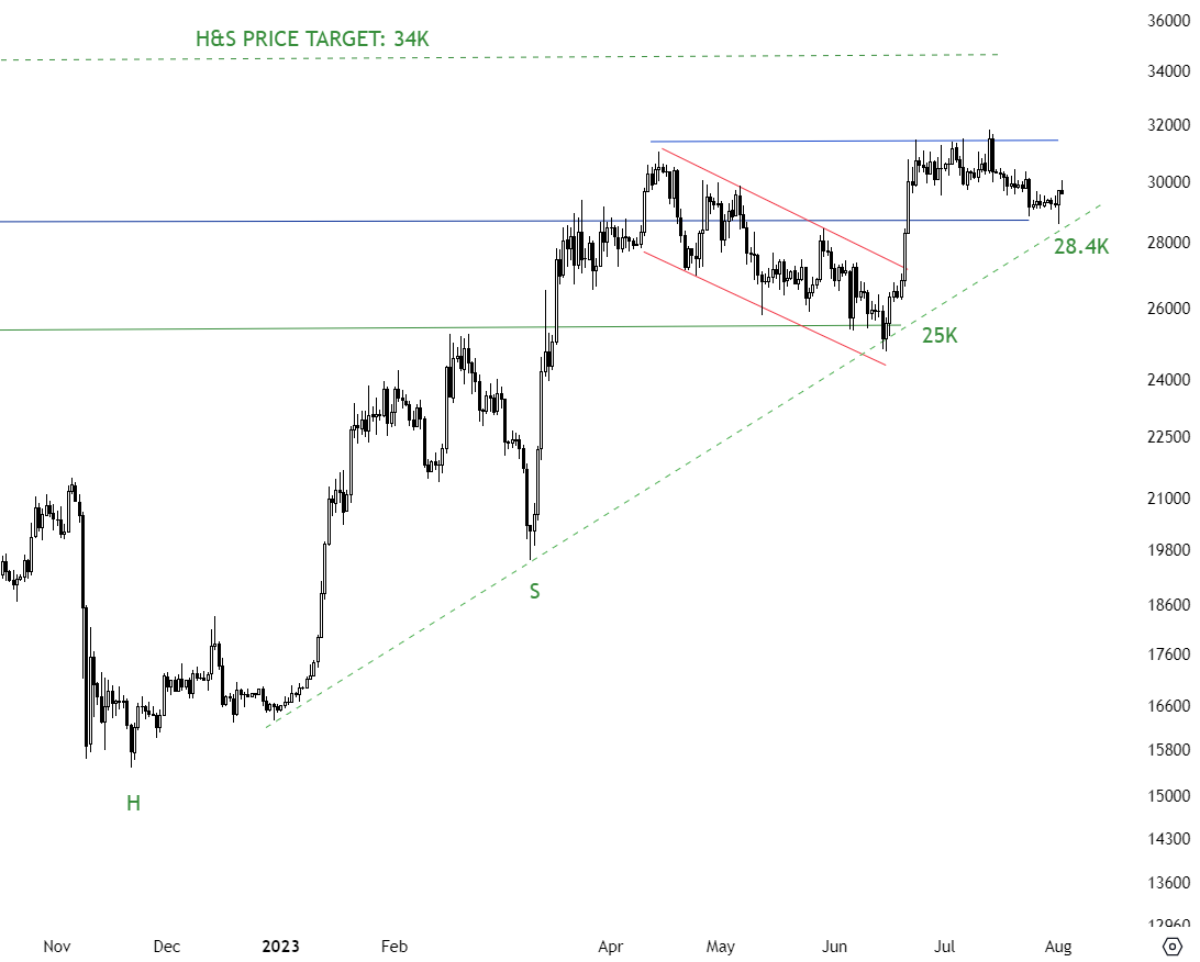 “However, the moment it turns into resistance is the moment that we could expect lower prices. For now, ~$29250 continues to hold.”