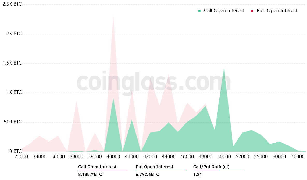 The 1.21 call-to-put ratio shows the dominance of the $335 million call (buy) open interest against the $280 million put (sell) options. Nevertheless, as Bitcoin stands near $41,000, most bullish bets are likely to become worthless.