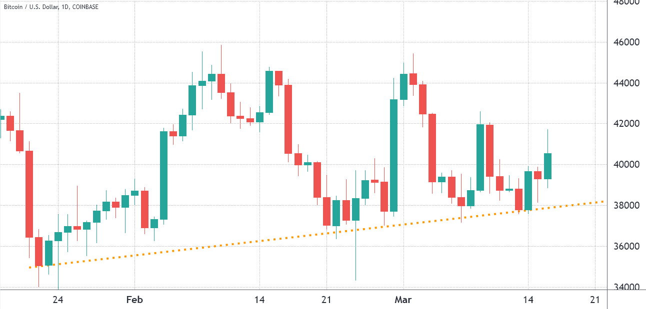 Bitcoin bulls had $98 million leverage long positions liquidated on March 16, so there’s less incentive to push the price higher in the short term. With this said, bulls will likely try to defend $40,000 support until the March 18 options expiry.