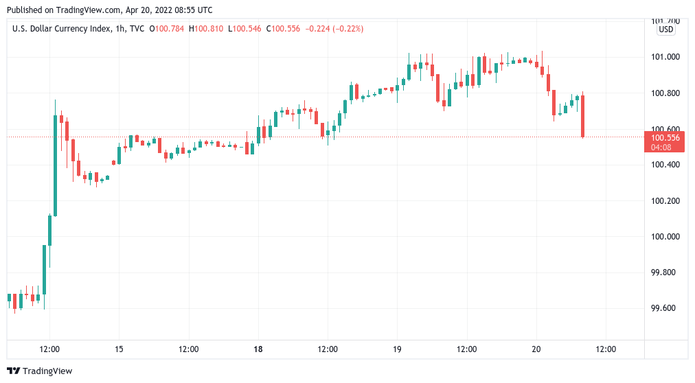 The U.S. dollar currency index (DXY) reversed after hitting 101 on Tuesday, its highest level since April 2020.