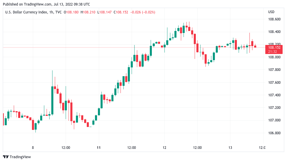 Biding its time meanwhile was the U.S. dollar index (DXY), which lingered at just above 108 after a corrective move from fresh twenty-year highs.