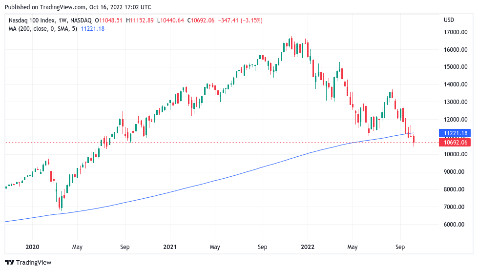 With the Nasdaq Composite Index seeing its first weekly close below the 200-period moving average in fourteen years, comparisons to the dotcom crash and 2008 Global Financial Crisis abounded on social media.