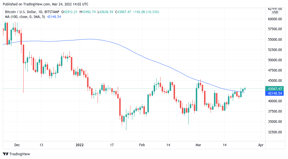 https://images.cointelegraph.com/images/840_aHR0cHM6Ly9zMy5jb2ludGVsZWdyYXBoLmNvbS91cGxvYWRzLzIwMjItMDMvZmQ3NDVlYzgtZWUxOC00Njg0LWFjZjItMzRjNjE0NzM2NDk4LmpwZw==.jpgBitcoin (BTC) continued to fight for $43,000 support at the Wall Street open on March 24 amid fresh jitters tied to United States economic policy.