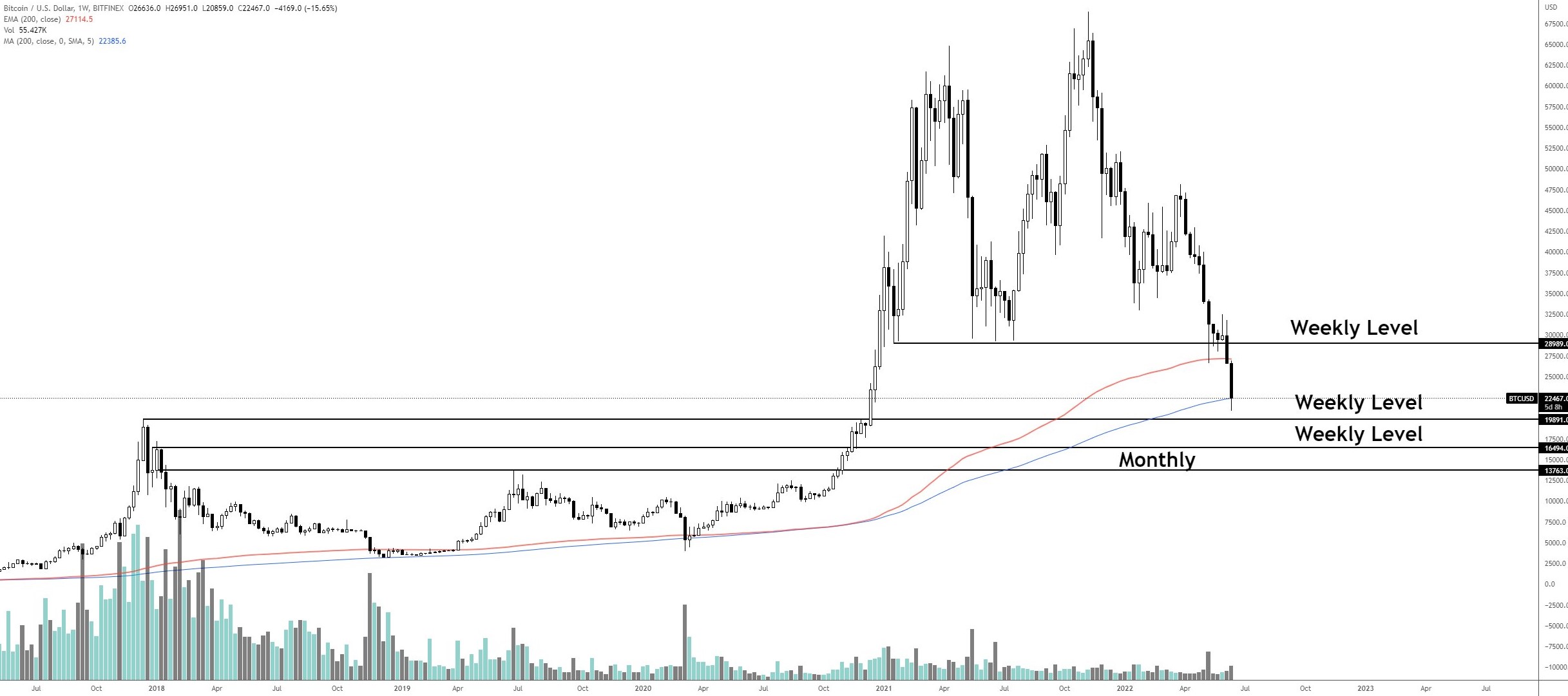 Along with the support provided by the 200-week MA, there are also several notable price levels from Bitcoin’s past that should now function as support should the price continue to slide lower.