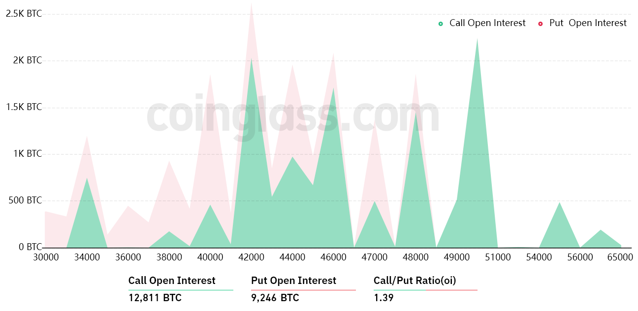 - Between $48,000 and $49,000: 9,350 calls vs. 1,300 puts. The net result favors the call (bull) instruments by $385 million.