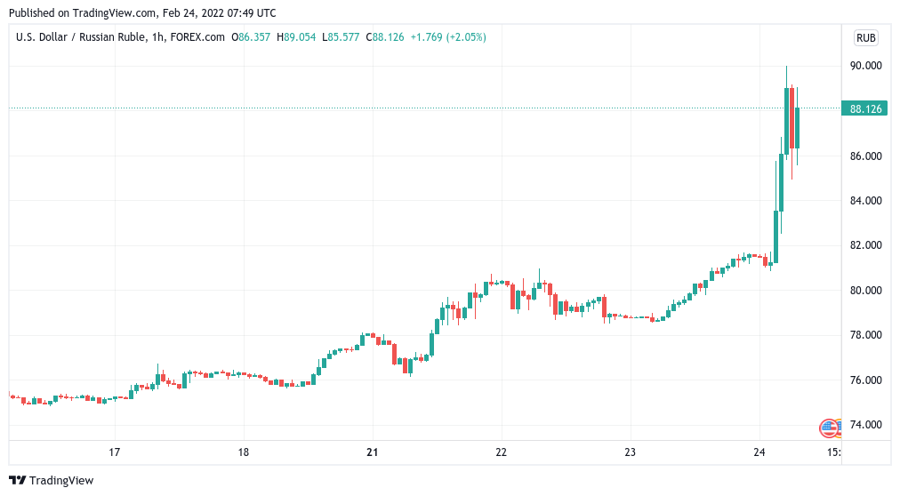 Tento príspevok bol pôvodne publikovaný na stránke https://cointelegraph.com/news/bitcoin-dips-12-as-russian-ruble-hits-all-time-low-against-usd-on-ukraine-military-operation a autorom článku je Cointelegraph By William Suberg. Tento článok je iba kópia originálneho článku.