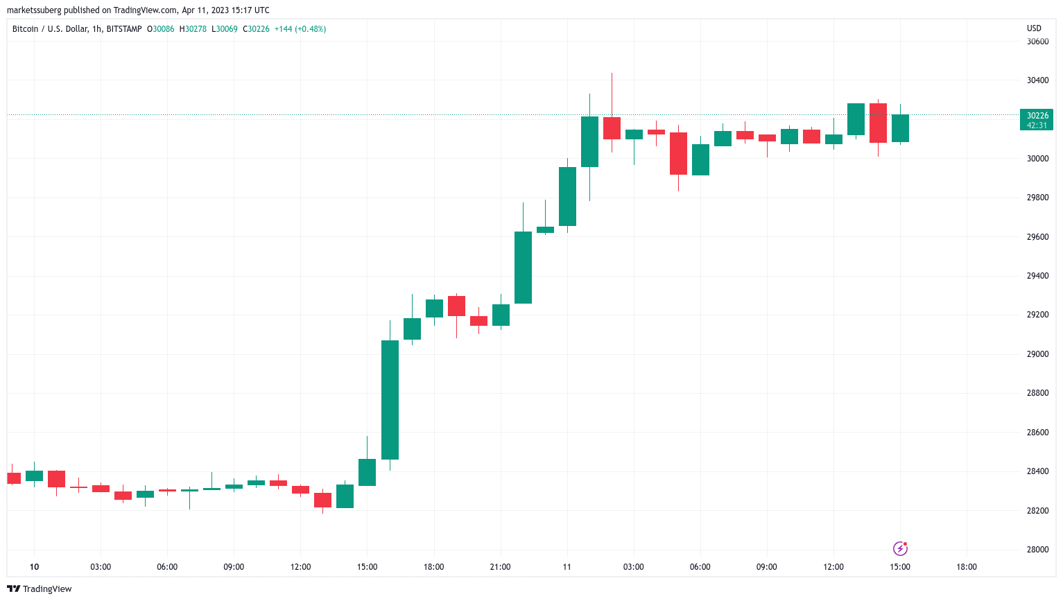 Bitcoin (BTC) got busy testing $30,000 as new support at the April 11 Wall Street open after hitting new 10-month highs.