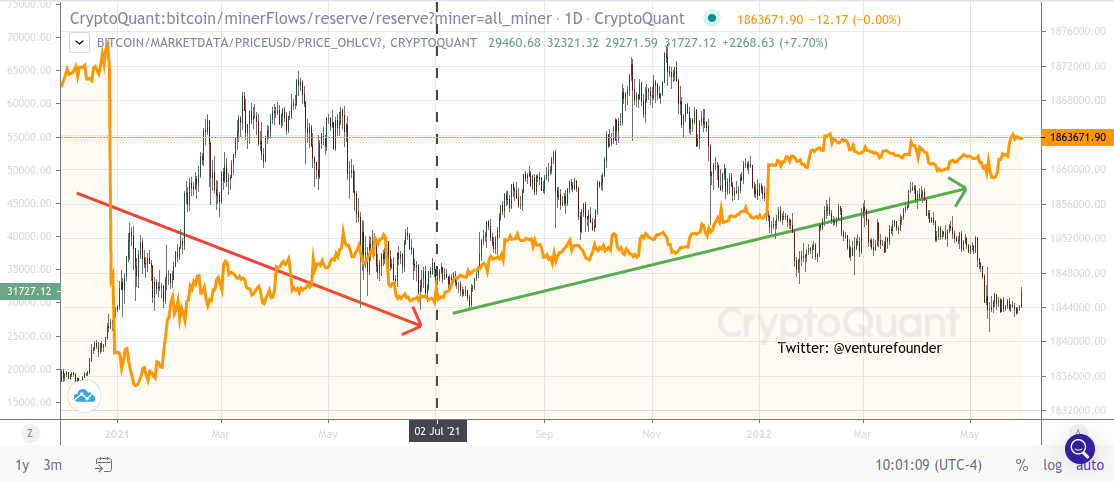 An accompanying chart showed that miners had increased their BTC reserves in the second half of May, in particular.