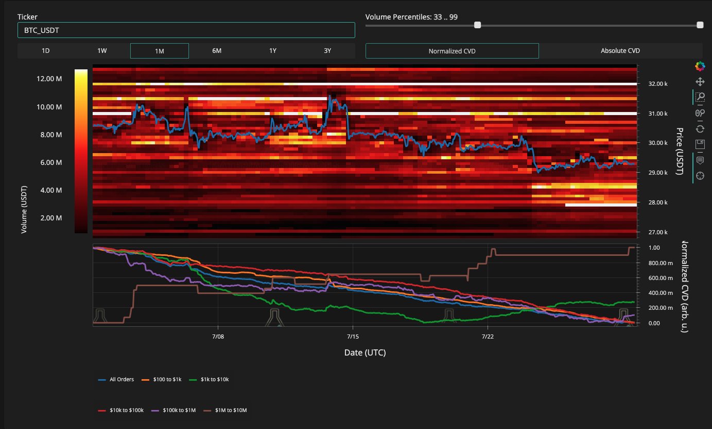 Analyzing movements among traders on the Binance BTC/USD order book, monitoring resource Material Indicators noted that buying pressure from whales was combining with increasing resistance closer to $30,000.