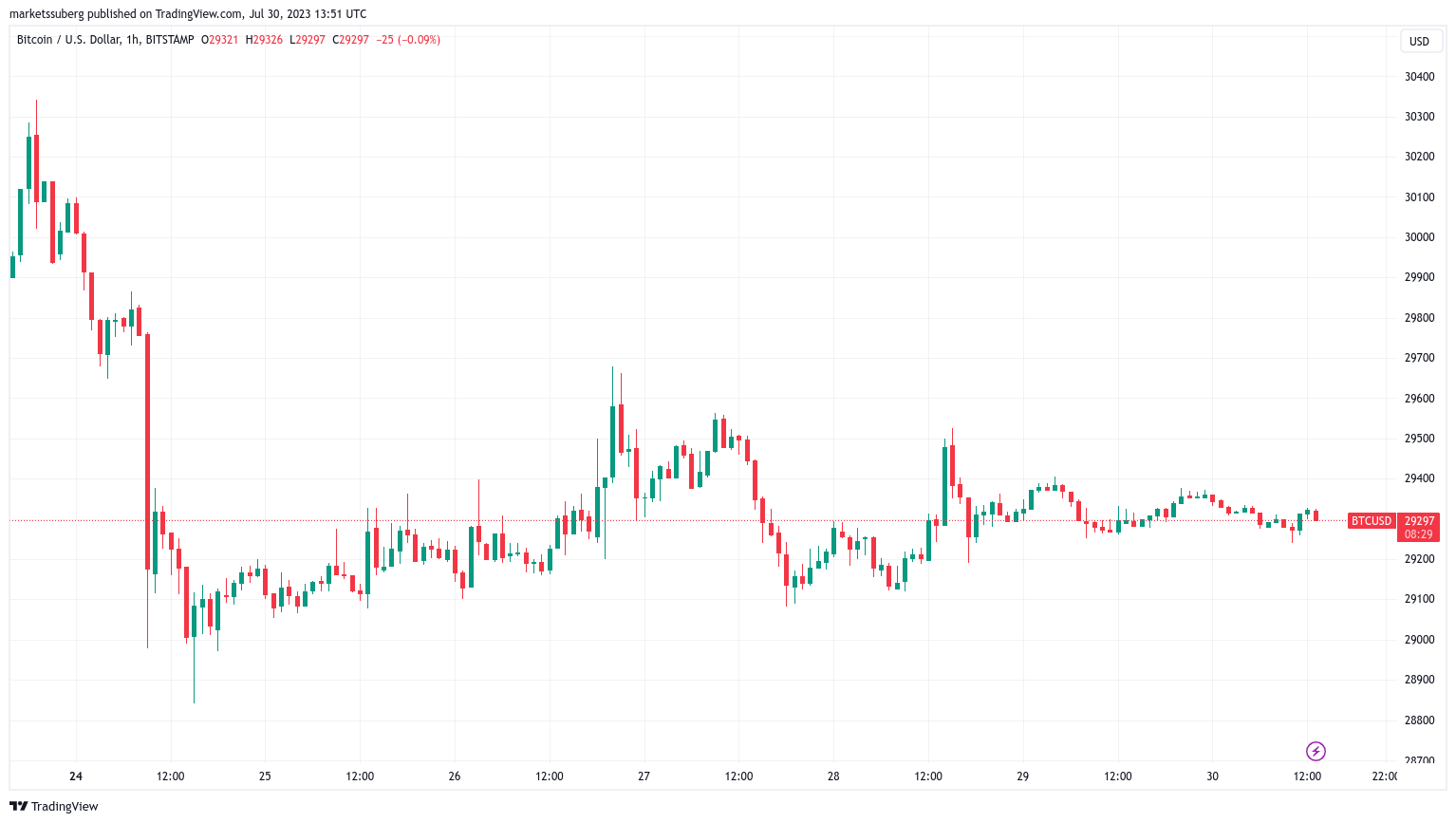 #BTC exhibiting impressive price stability around the ~$29250 for most of the week$BTC #Crypto #Bitcoin https://t.co/QB6iHS2gsT pic.twitter.com/mnoDg7ltpx