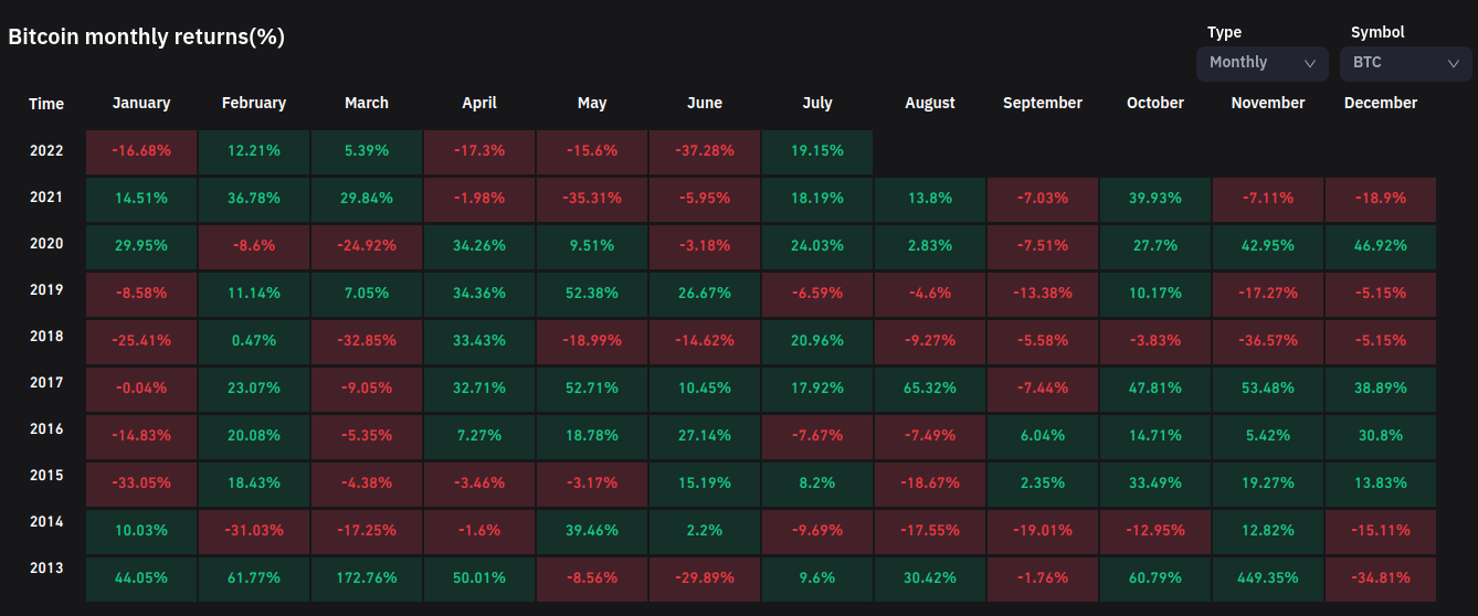 Nonetheless, BTC/USD was still on track to deliver approximately 19% monthly gains for July, these starkly contrasting with any other month of the year so far.