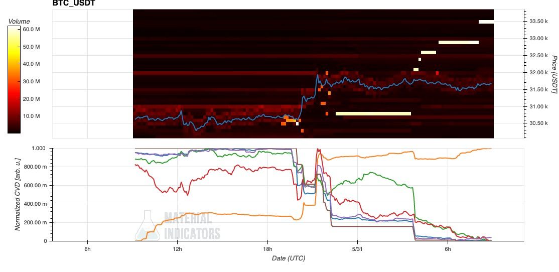 1- Inflow of >3,500 BTC in the spot market at its maximum (30.7k).