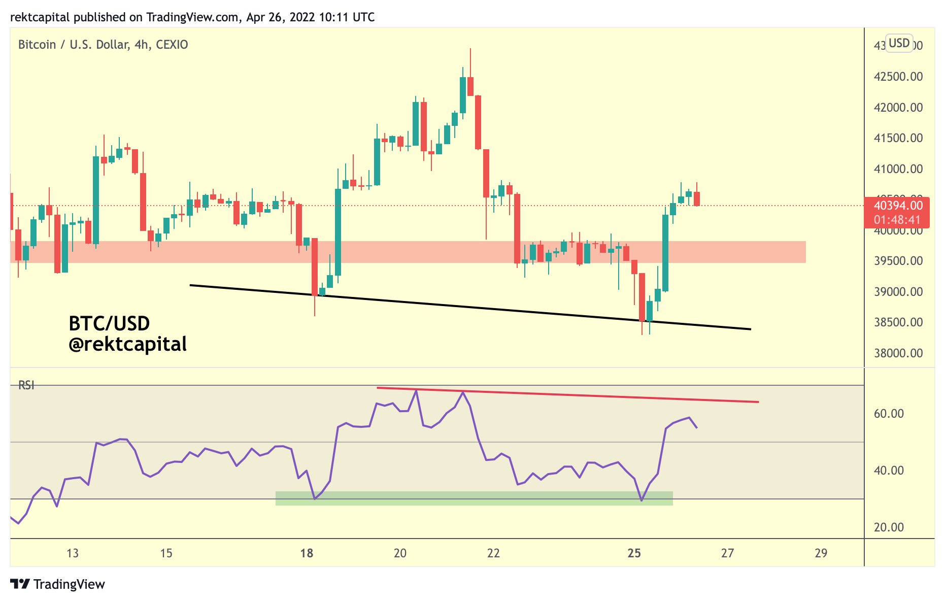 https://images.cointelegraph.com/images/840_aHR0cHM6Ly9zMy5jb2ludGVsZWdyYXBoLmNvbS91cGxvYWRzLzIwMjItMDQvMzY4ODM1MTEtOTNmMC00YjlmLWJmZmEtNDlkMzRlOTNkMDRlLmpwZWc=.jpegBitcoin (BTC) pierced $40,000 at the Wall Street open on April 26 as its latest relief rally lasted less than 24 hours.