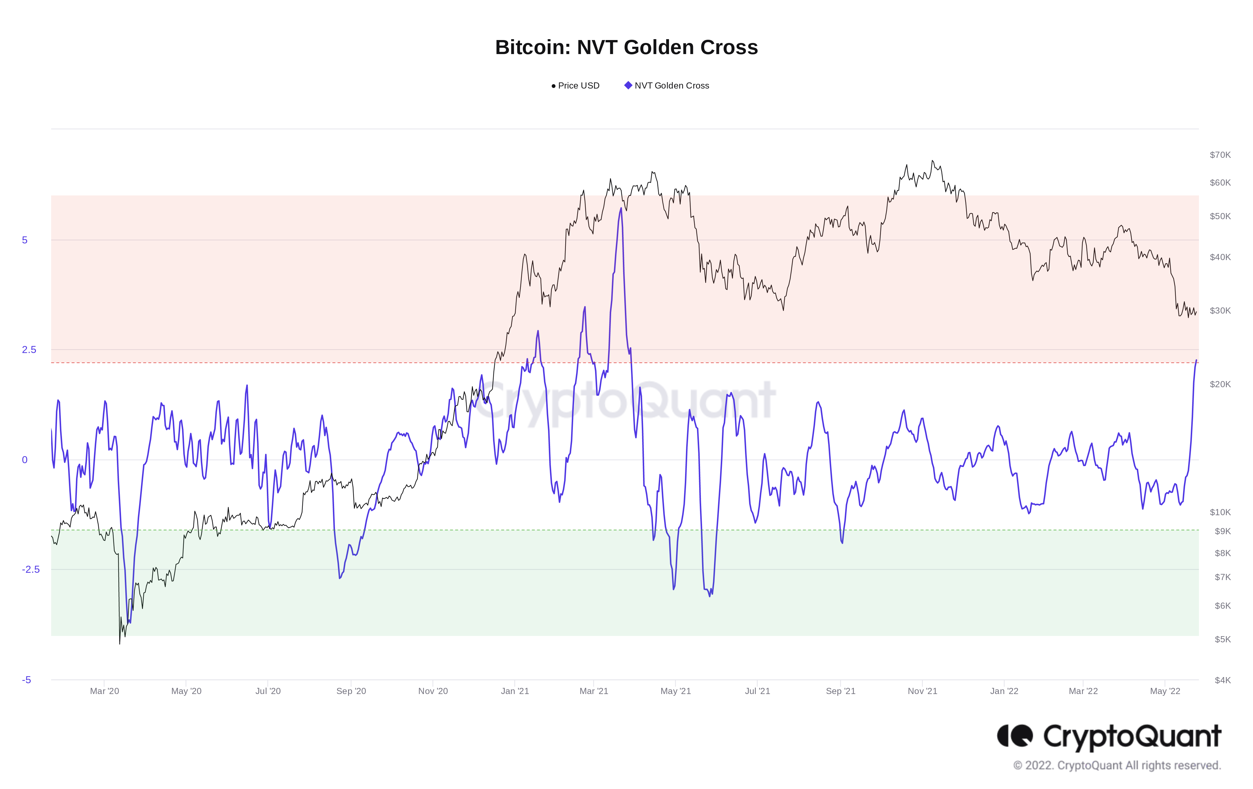For on-chain analytics platform CryptoQuant, concerning signs from the network transaction value (NVT) Golden Cross metric suggested a retracement was incoming.