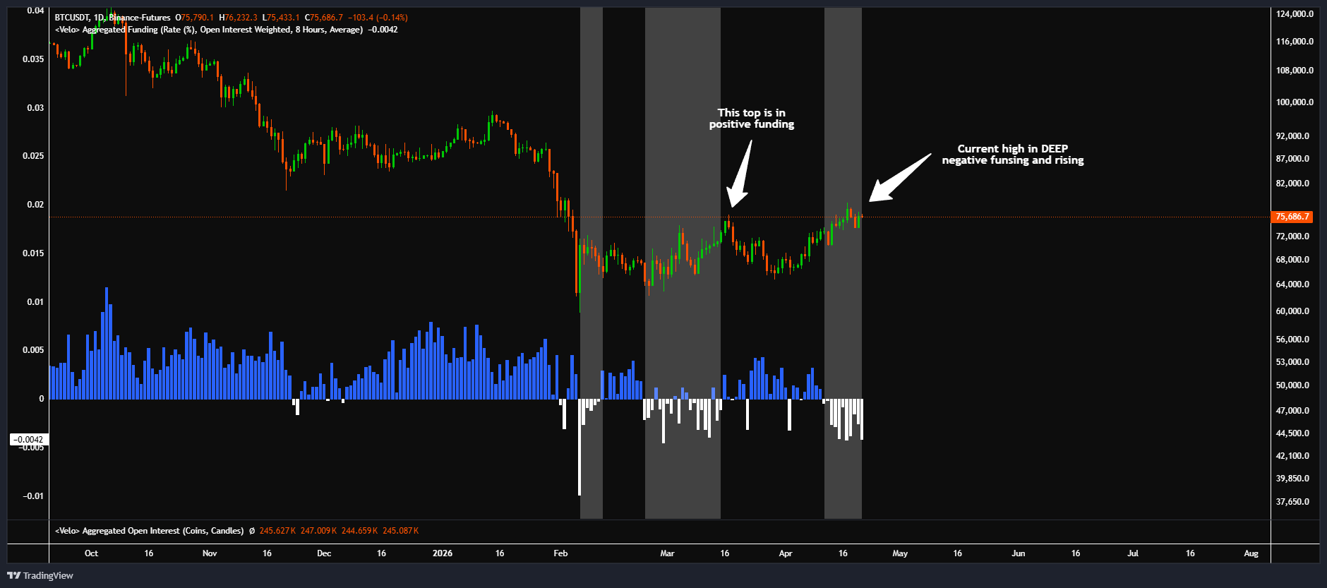 “We’ve never actually gotten one when the chart was grinding up. NEVER. It only occurred during the local BOTTOMS,” trader Osemka noted on X alongside charts showing past negative funding periods.