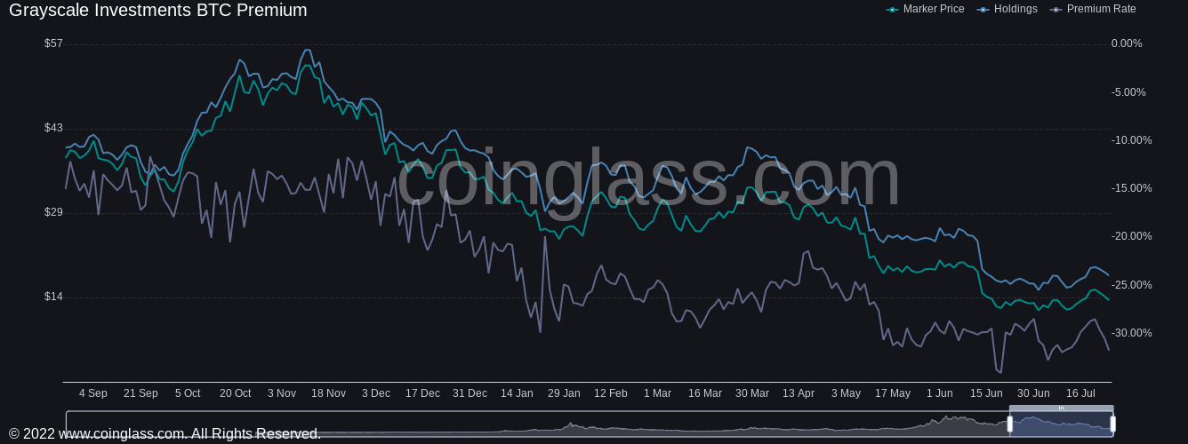 The giant Bitcoin fund still had a negative “premium” of over 30% as of July 27, marking some of its steepest discounts to the Bitcoin spot price in history.