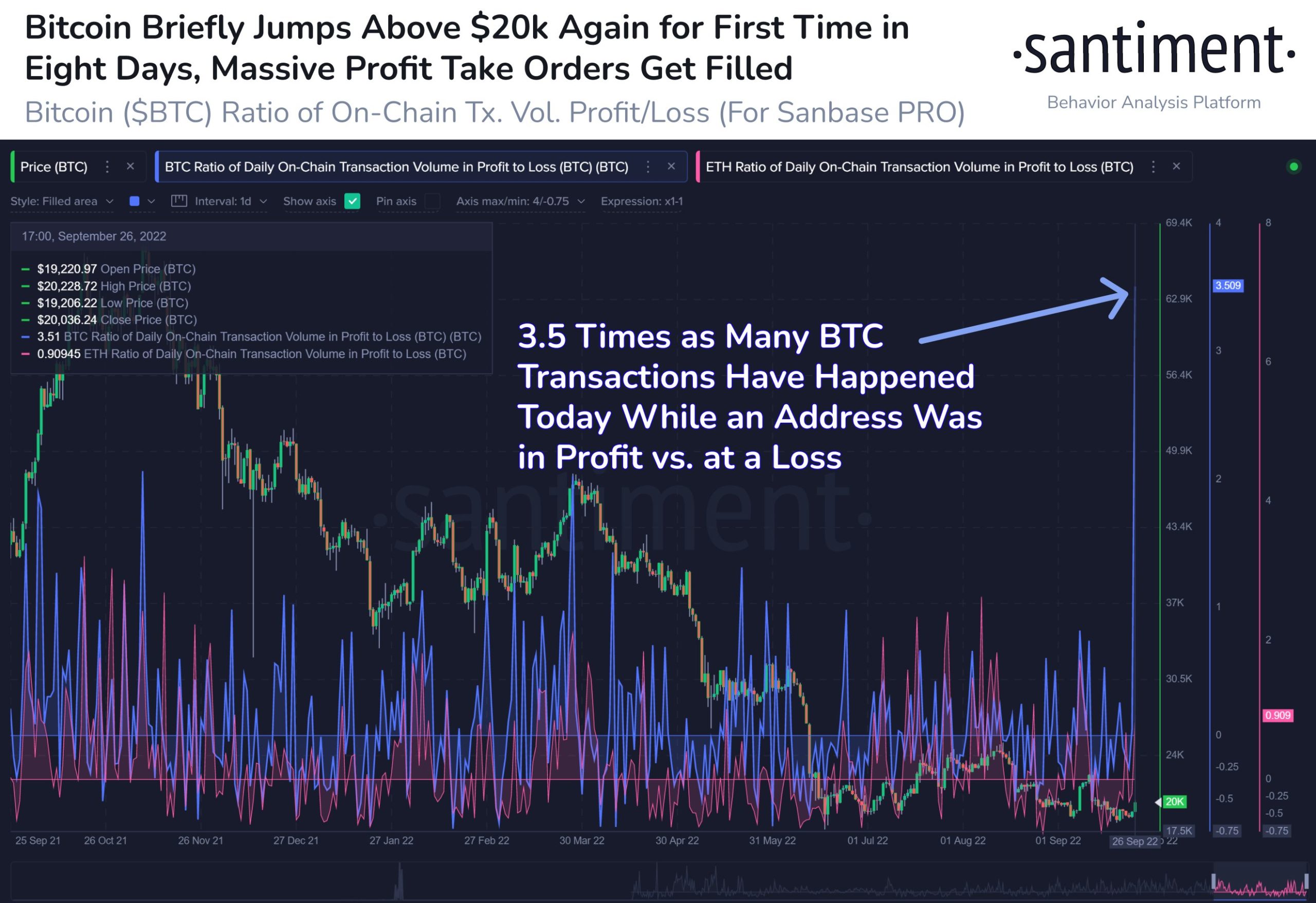 Research firm Santiment meanwhile noted mass profit-taking beginning as Bitcoin recrossed the $20,000 boundary for the first time in over a week.