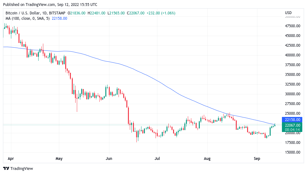 Data from Cointelegraph Markets Pro and TradingView showed BTC/USD hitting $22,481 on Bitstamp, its highest since Aug. 19.