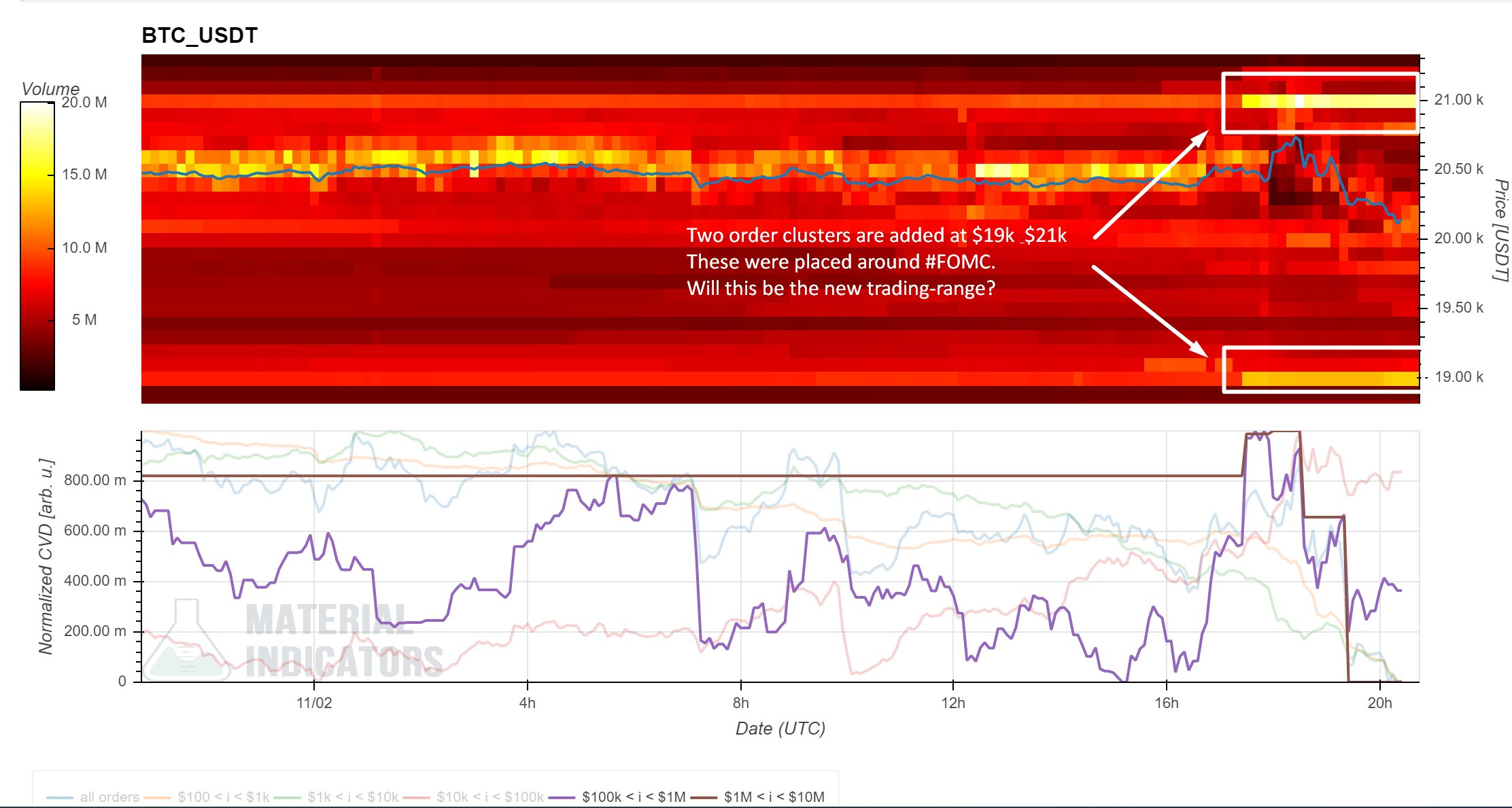 “Two order clusters are added at $19000 & $21000. These are placed around the FOMC,” he noted.