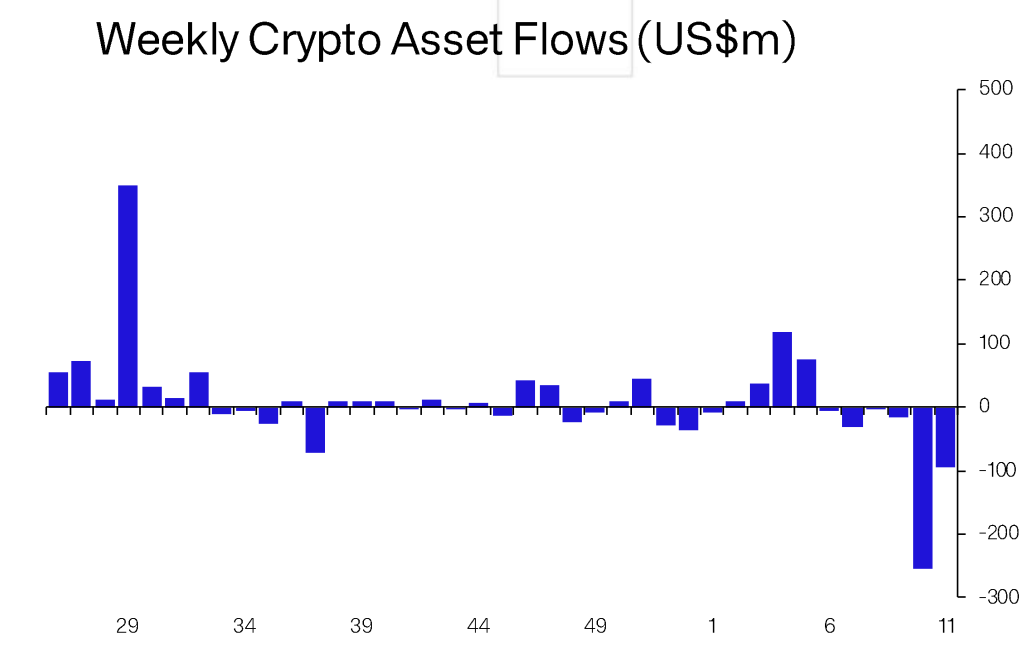 The institutional crypto asset flows data from CoinShares reported the largest two-week sell-off from investment funds since March 6. The outflows have erased the positive inflows for this year, with the net year-to-date flow of negative $177 million.
