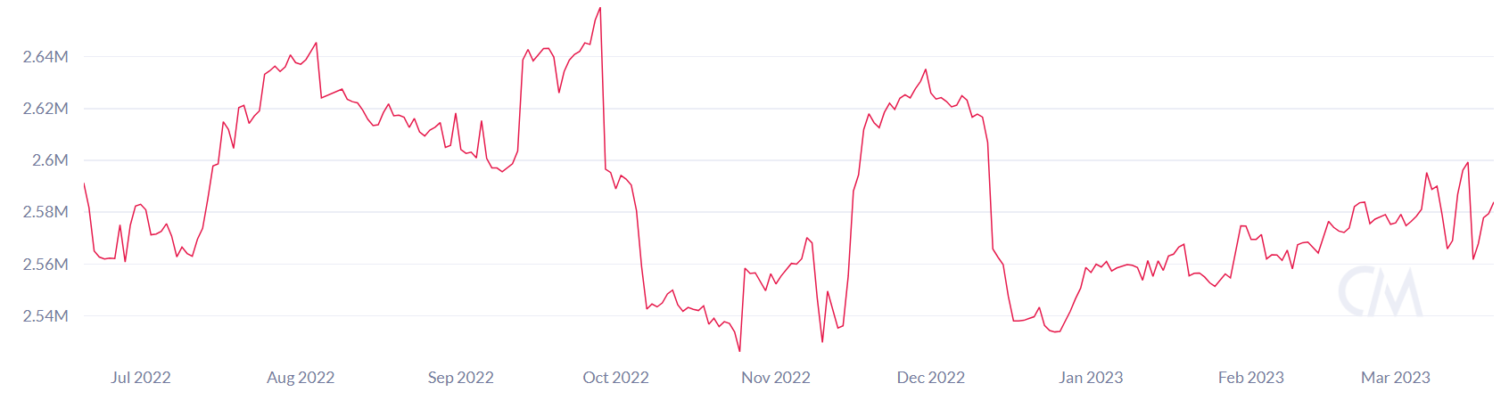 Some miners booked some profit on March 14 when Bitcoin’s price broke above $25,000 for the first time and again a week later when it touched $28,000. However, the total holdings are still in an uptrend since the start of 2023.