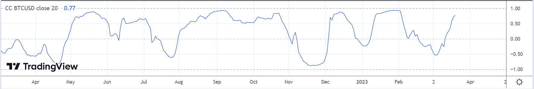 Bitcoin’s (BTC) price broke above the February 2023 highs of $25,200 after U.S. inflation data was in consensus with the market expectation. The potential fallout of the global banking system further promoted Bitcoin investment as a non-correlated global hedging instrument similar to gold in March. The correlation between gold and BTC has been rising since the start of the month.