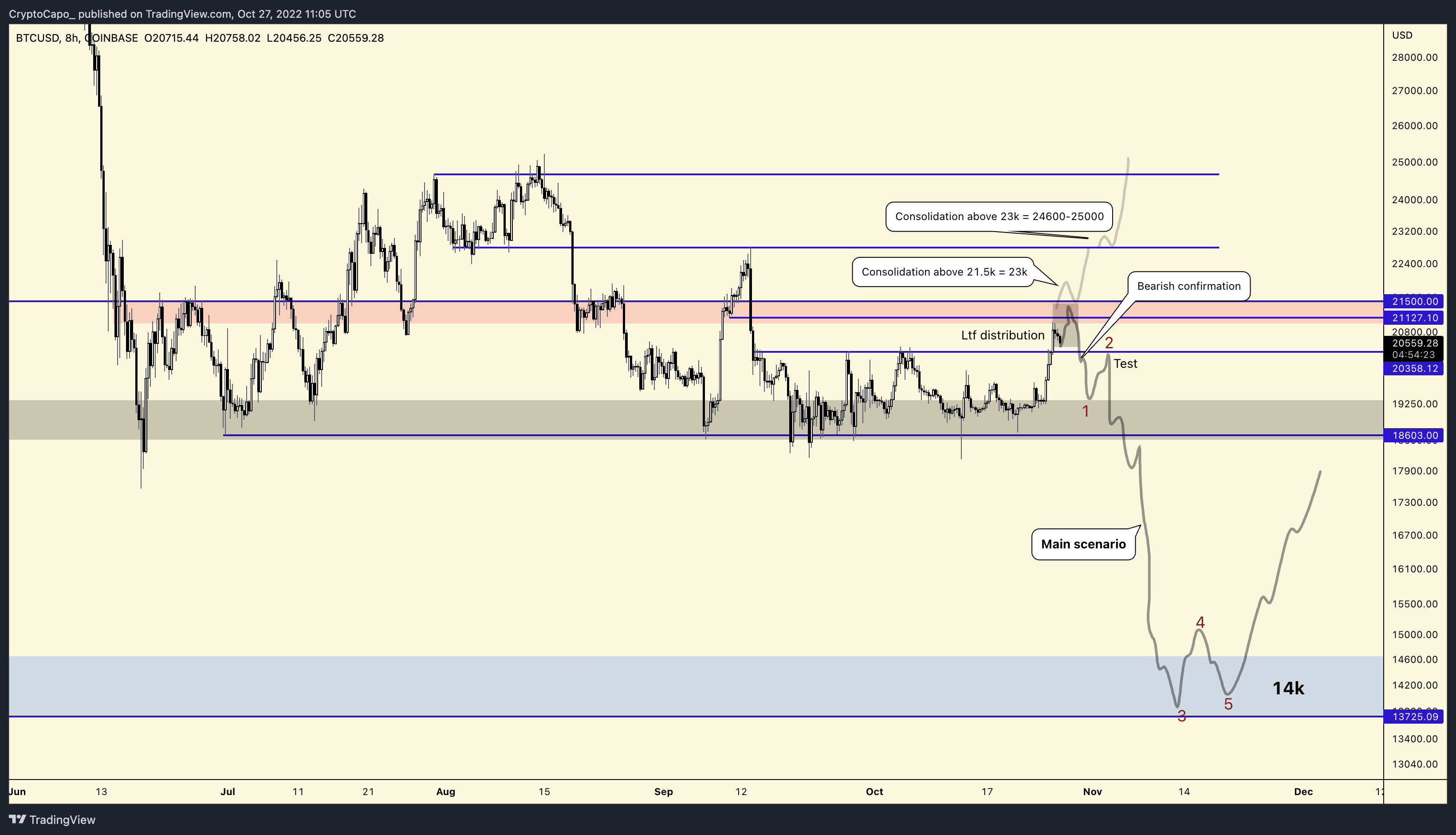 His “main scenario” remained a reversal to new macro lows for BTC/USD, these potentially hitting $14,000.