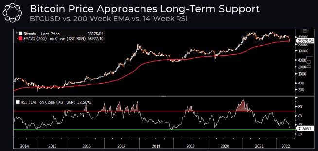 The pullback to this level is notable in that it was a retest of Bitcoin’s 200-week exponential moving average (EMA) at $26,990. According to cryptocurrency research firm Delphi Digital, this metric has historically “served as a key area for prior price bottoms.”