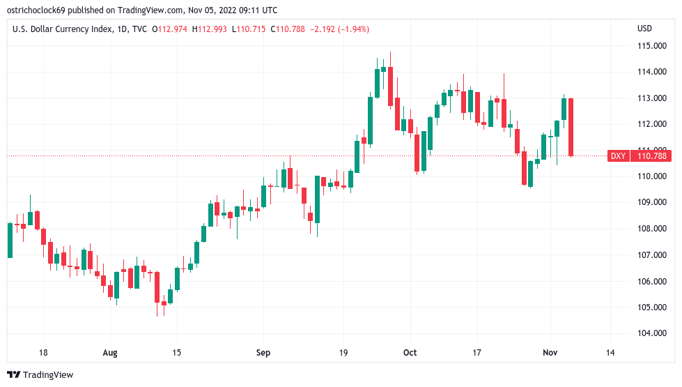 https://images.cointelegraph.com/images/840_aHR0cHM6Ly9zMy5jb2ludGVsZWdyYXBoLmNvbS91cGxvYWRzLzIwMjItMTEvYjdjZjNmNzktODM5Yy00OGIzLThhZDgtN2I0MWYzNzkxNDUzLmpwZw==.jpgBitcoin (BTC) held gains above $21,000 into Nov. 5 as the U.S. dollar posted a rare major daily decline.