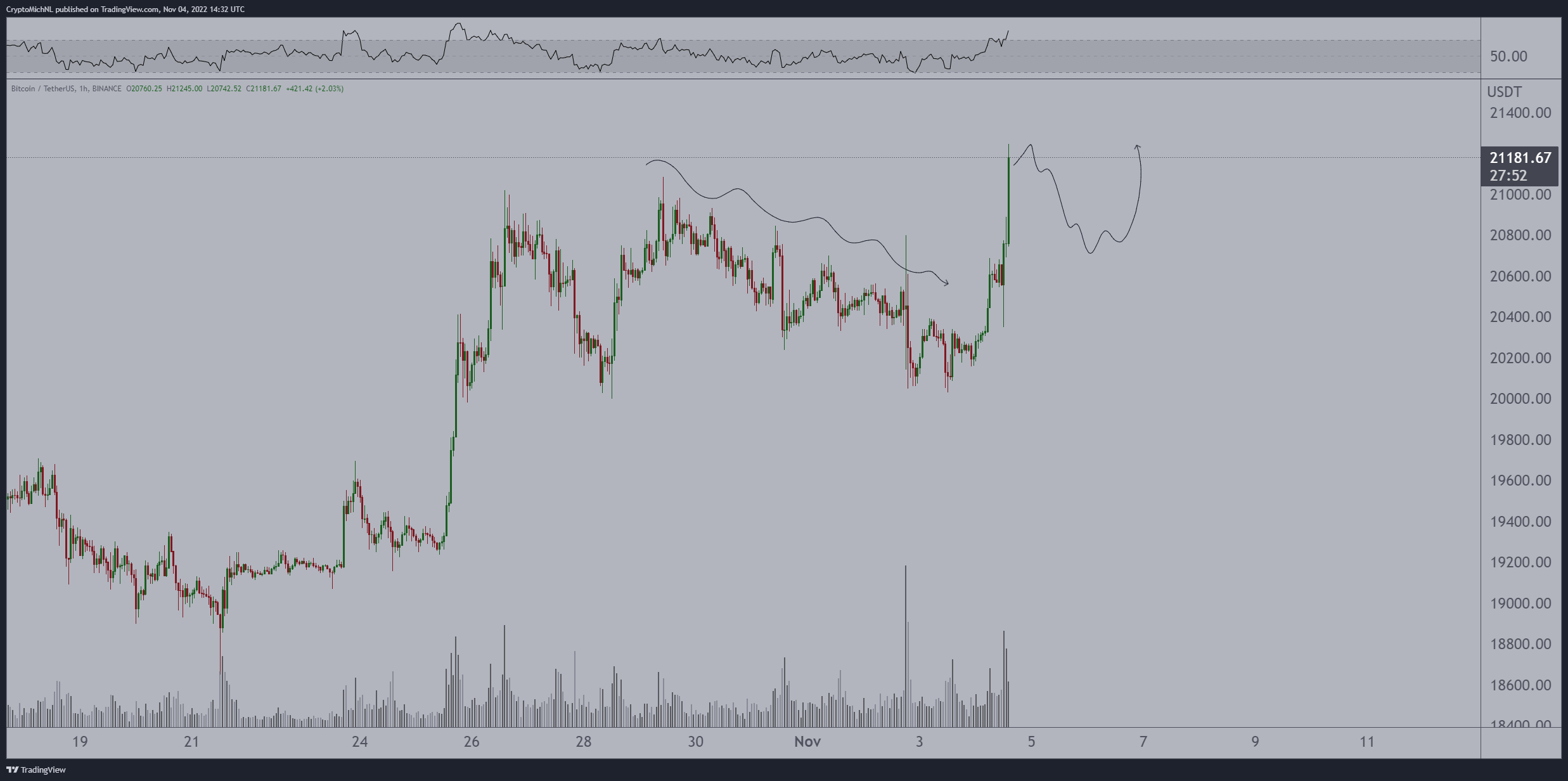 “I’m assuming we’ll continue towards $22.5K from here, but have a slight correction before continuing (as we took out all the liquidity). Buy the dip season.”