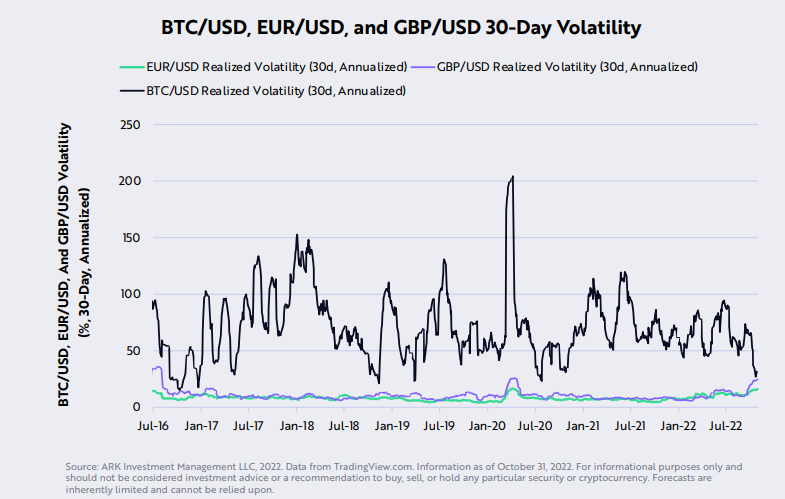 Continuing on the theme of low volatility, ARK’s report, led by well-known analyst David Puell, showed that it was not just stocks being undercut by Bitcoin’s stability.