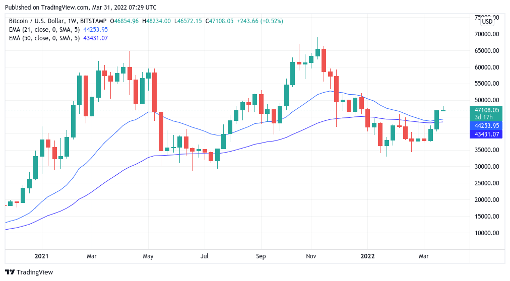 https://images.cointelegraph.com/images/840_aHR0cHM6Ly9zMy5jb2ludGVsZWdyYXBoLmNvbS91cGxvYWRzLzIwMjItMDMvNjkzYjEzODktZDczZC00Njc1LTllZWQtMjQ3OGExODU2MGE4LmpwZw==.jpgBitcoin (BTC) may be consolidating at $47,000, but longer timeframes show just how significant this week’s mini bull run has been.