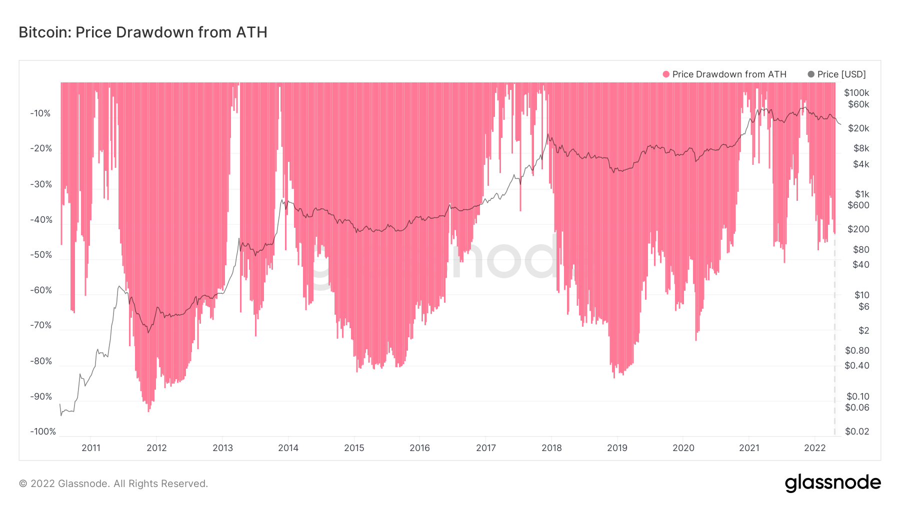 Current levels around $31,000 are comparatively modest as a drawdown, data from on-chain analytics firm Glassnode shows.