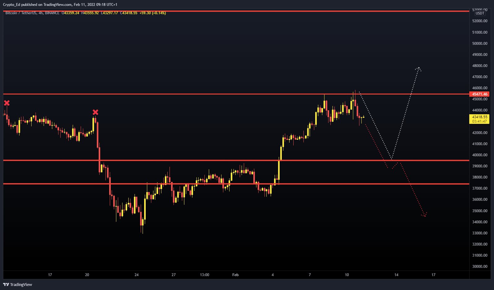“Expecting a move towards $40k. Bullish scenario indicates a bounce to 48k. Bearish comes in play when we break 40k.”