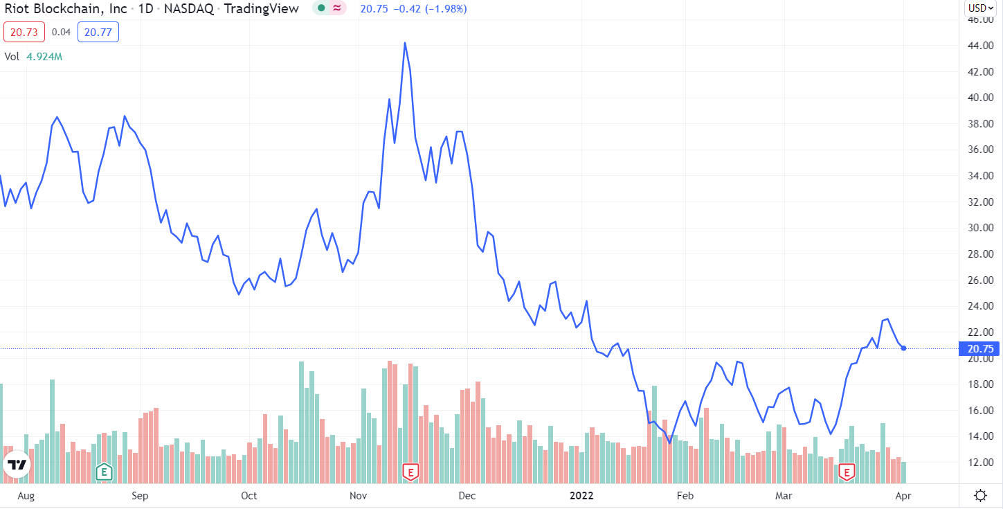 Last October, Riot Blockchain said it tripled its Bitcoin production year-over-year and was, back then, hoarding $194 million in BTC. However, the company’s production took a big hit in February when it briefly shut down 99% of its operations as a winter storm approached Texas. At the end of 2021, Riot Blockchain possessed close to $834.6 million in tangible book value, mainly due to its plant, property and mining equipment.