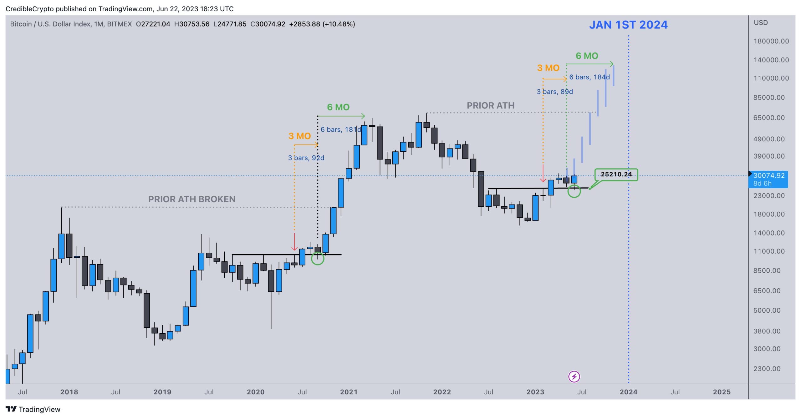 In a Twitter update on June 22, Credible Crypto argued that the next four months should deliver the bullish BTC price momentum needed to tackle $69,000.