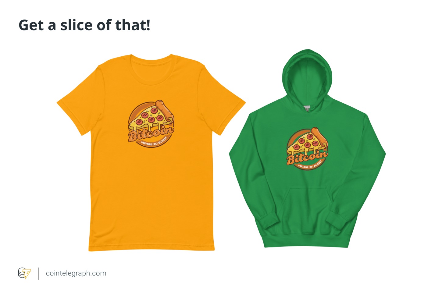 Celebrate Bitcoin Pizza day with the Bitcoin Pizza merch collection. Pick up some of this exclusive swag for you or anyone you know who might need a hot and fresh new look. The Cointelegraph Store is ready to process your order and deliver it hot and fresh from the oven.