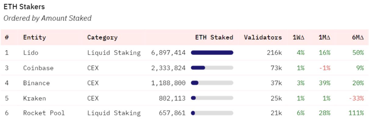 Rocket Pool is the second most popular decentralized Liquid Staking Derivative (LSD) platform after Lido. It commands 3% market share of the total Ethereum staking pool and has grown two-fold in the last six months, according to Dune data from Hildobby.