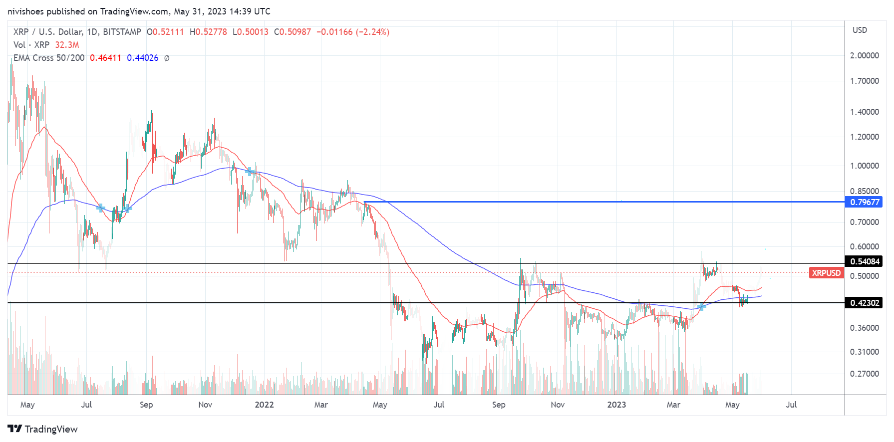 Technically, XRP faces resistance from the October 2022 and 2023 yearly peak levels around $0.54. A successful breakout above this level can propel the price to the 2022 breakdown levels around $0.79.