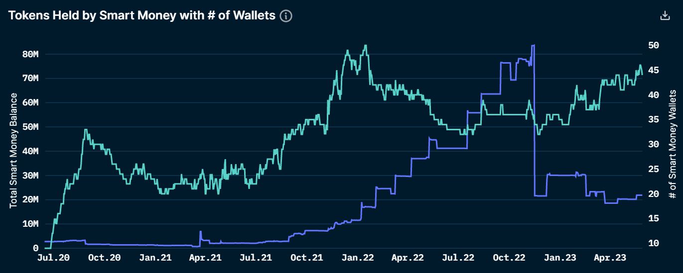 RNDR has added 5.5% gains in May, rallying strongly in the second half of the month. Data from Nansen shows that the smart token holding for RNDR token has reduced since the start of this year. Nevertheless, the number of unique smart wallets holding RNDR has increased linearly during the same period.