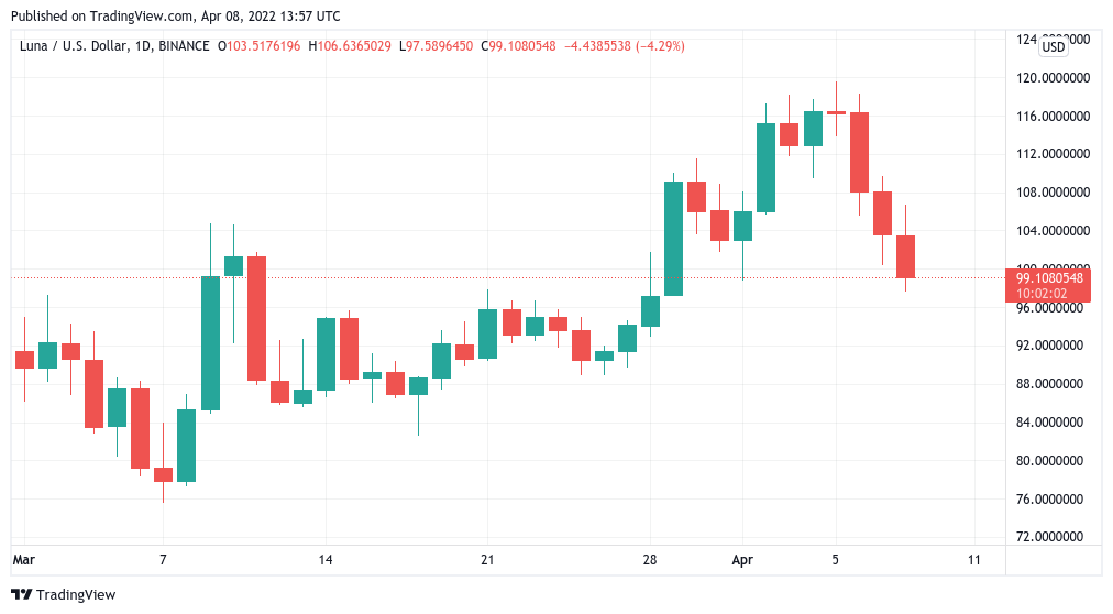 LUNA brings up the rear on major altcoins