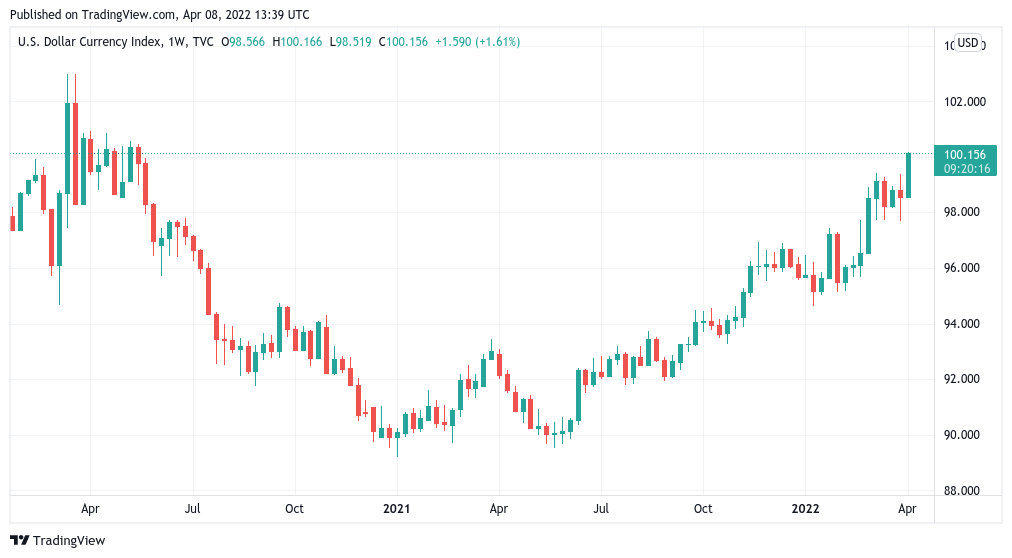 Huge risk-off shift in TradFi in the last few hours… Dollar index >100 for the first time since May 2020