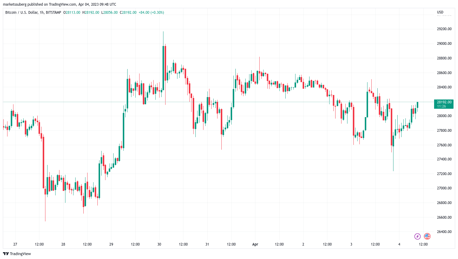 BTC price returns to $28,000 after weekly lo
