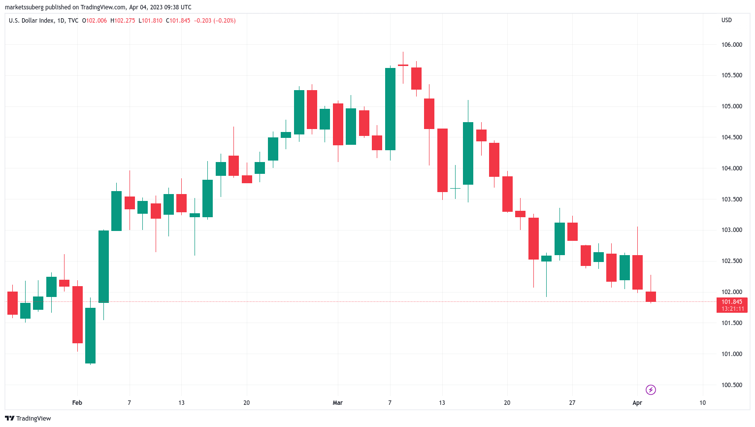 The U.S. dollar index (DXY) was below the 102 mark at the time of writing.
