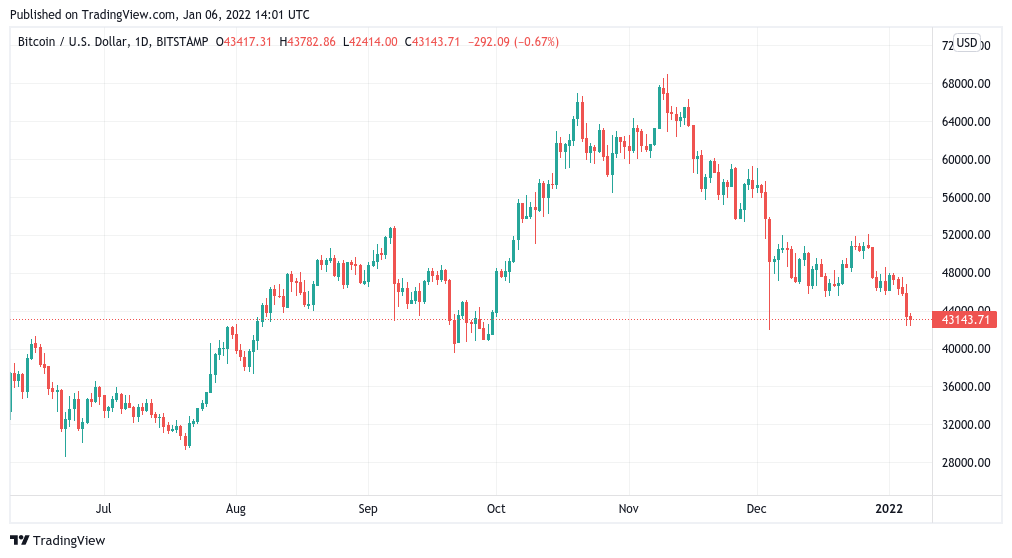https://images.cointelegraph.com/images/840_aHR0cHM6Ly9zMy5jb2ludGVsZWdyYXBoLmNvbS91cGxvYWRzLzIwMjItMDEvMzMyYmE3NjctYjJjNC00ZjY0LWExZTctMzY2MmM0ZmFkZjJkLmpwZw==.jpgBitcoin (BTC) briefly touched $43,000 prior to Wall Street opening on Jan. 6 as new market analysis offered bad news for bears.