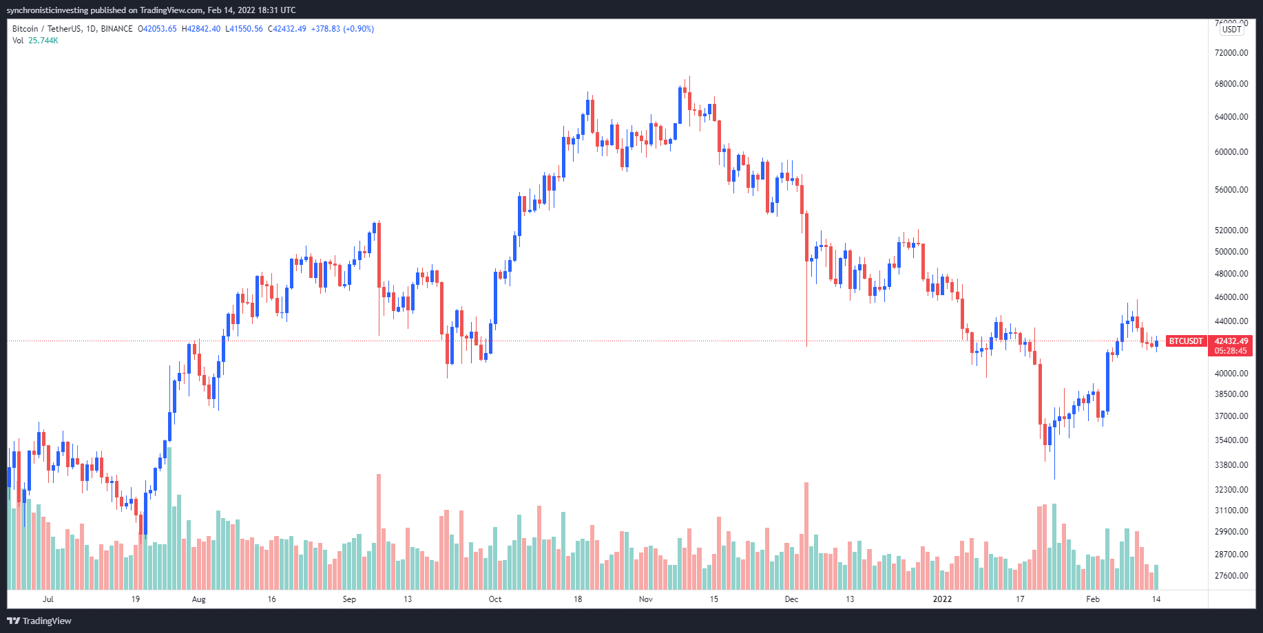 Data from Cointelegraph Markets Pro and TradingView shows that the price of Bitcoin has traded in a range between $41,500 and $43,000 over the past couple of days and with tensions between Ukraine and Russia escalating, many traders are less than optimistic about Bitcoin’s short-term prospects.