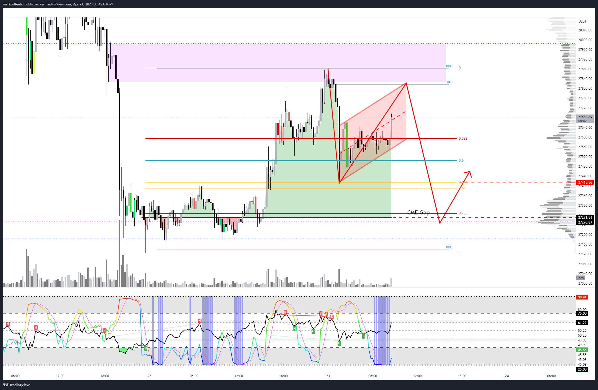 Analyst Mark Cullen eyed the potential for BTC/USD to approach the April 21 CME futures closing price of $27,310 before the weekly close.