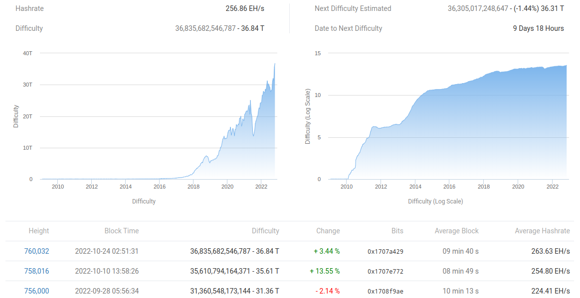 Data from BTC.com showed the hash rate at around 257 exahashes per second, with the difficulty due to undergo a slight decrease at the next adjustment, still nine days away.