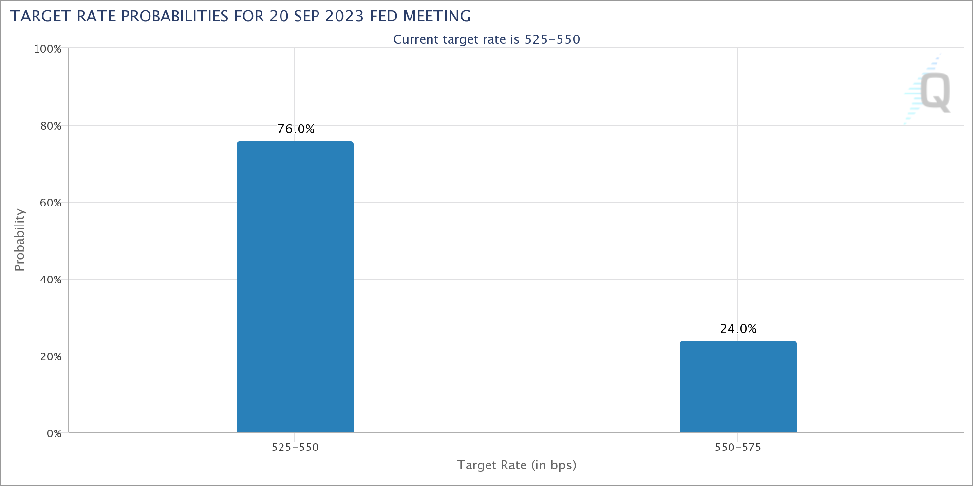 On the day, odds of rates pausing at their current 5.25-5.5% stood at 76%, with a 24% likelihood of another 0.25% hike, according to CME Group’s FedWatch Tool.