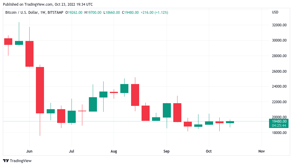 Should BTC/USD end the week above $19,440, however, it would nonetheless represent the highest weekly close since early September.